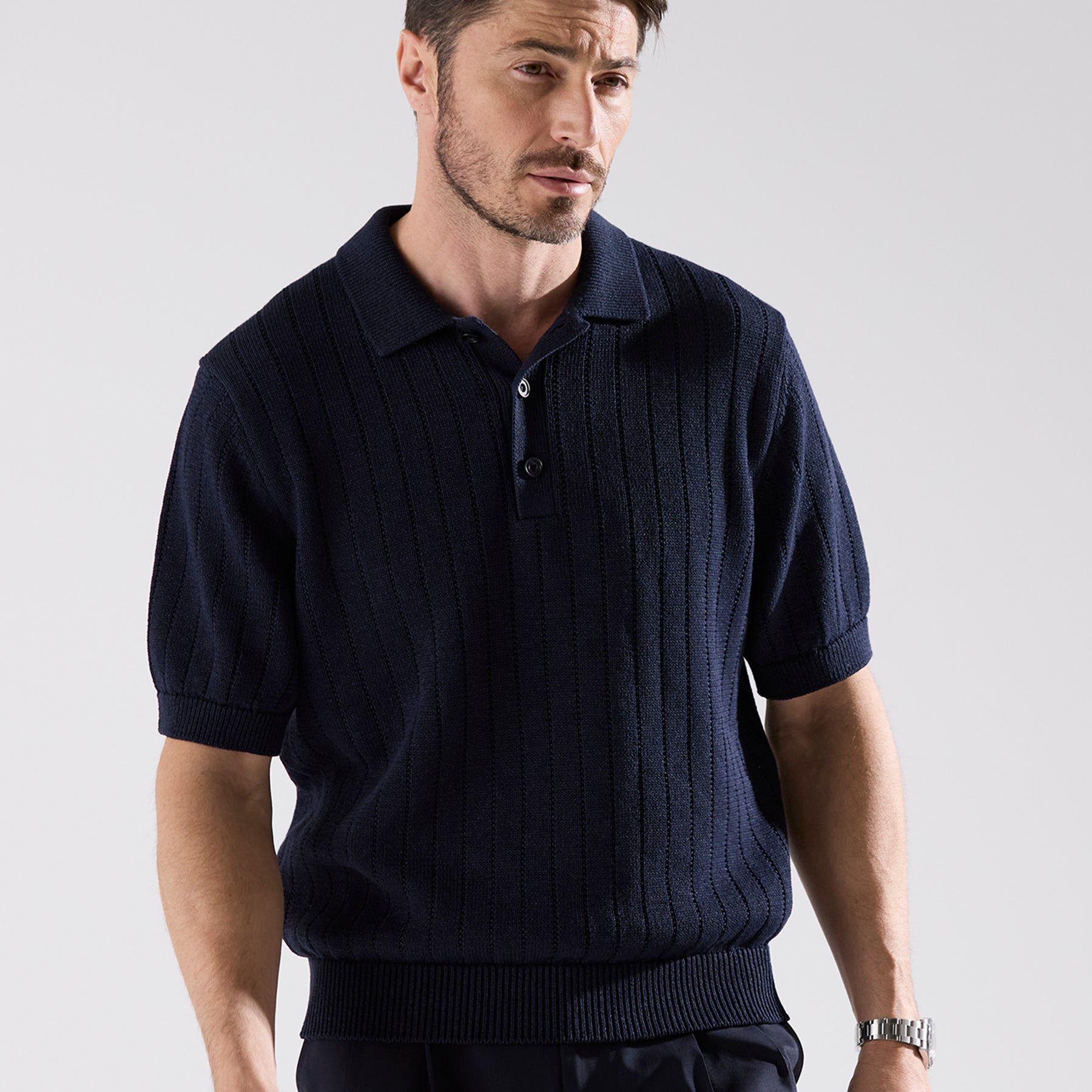 トレーサブルなコットンの代表格であるトルコオーガニックコットンと美濃和紙を組み合わせたニットポロ。コットンのなめらかな肌触りと美濃和紙ならではのドライで清涼感のあるタッチは、蒸し暑い季節でも着やすい1枚。編地には“針抜き”という技法を取り入れ、肌離れの良さと見た目の軽さにこだわりました。肩周りはややリラックス感のあるサイズに設定していますが、縦に走るラインの効果でスッキリとした印象を与えてくれます。