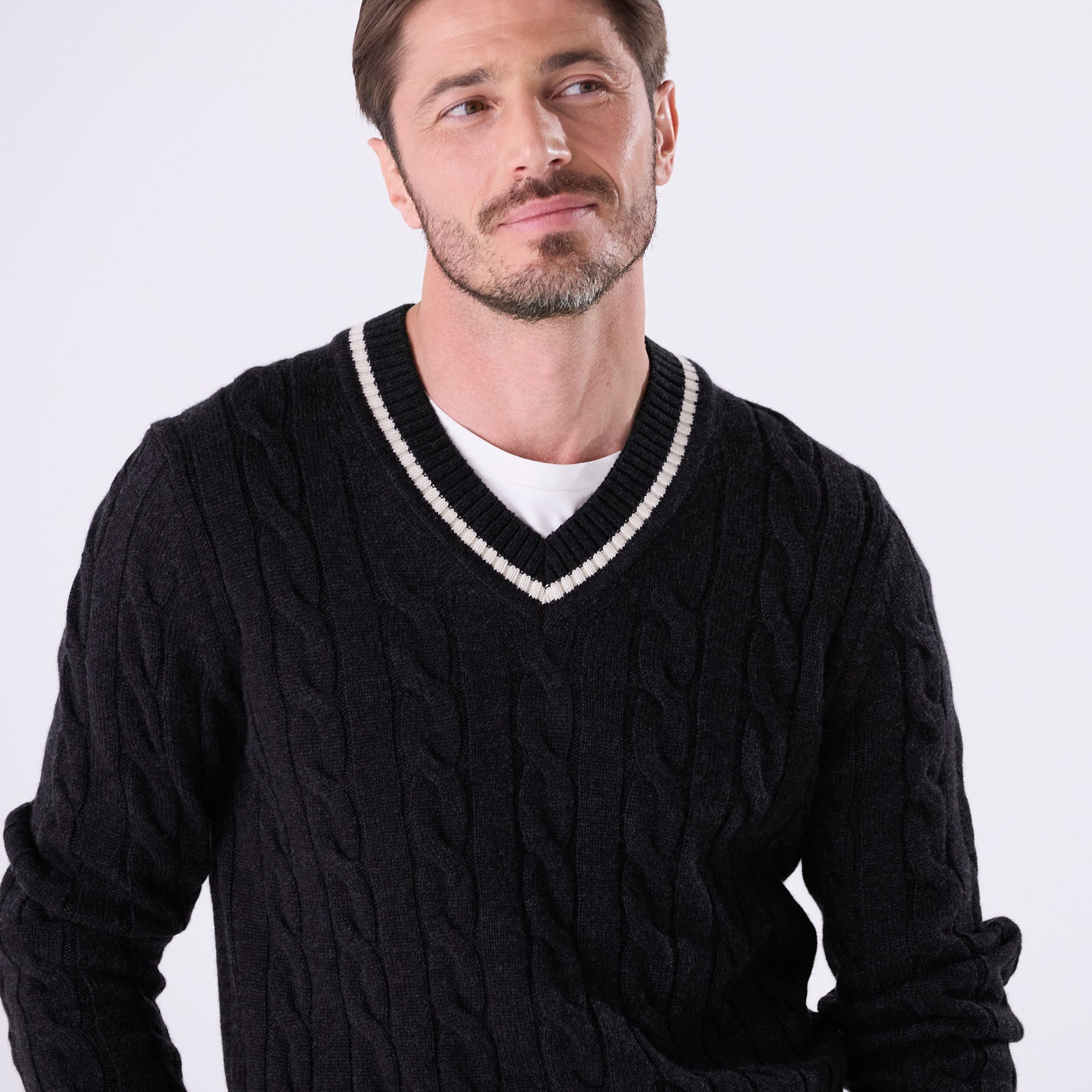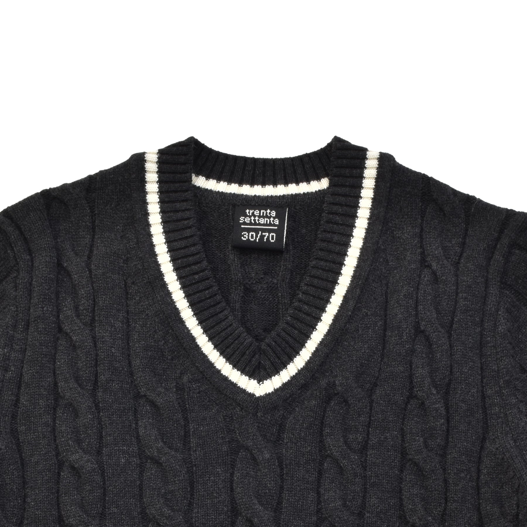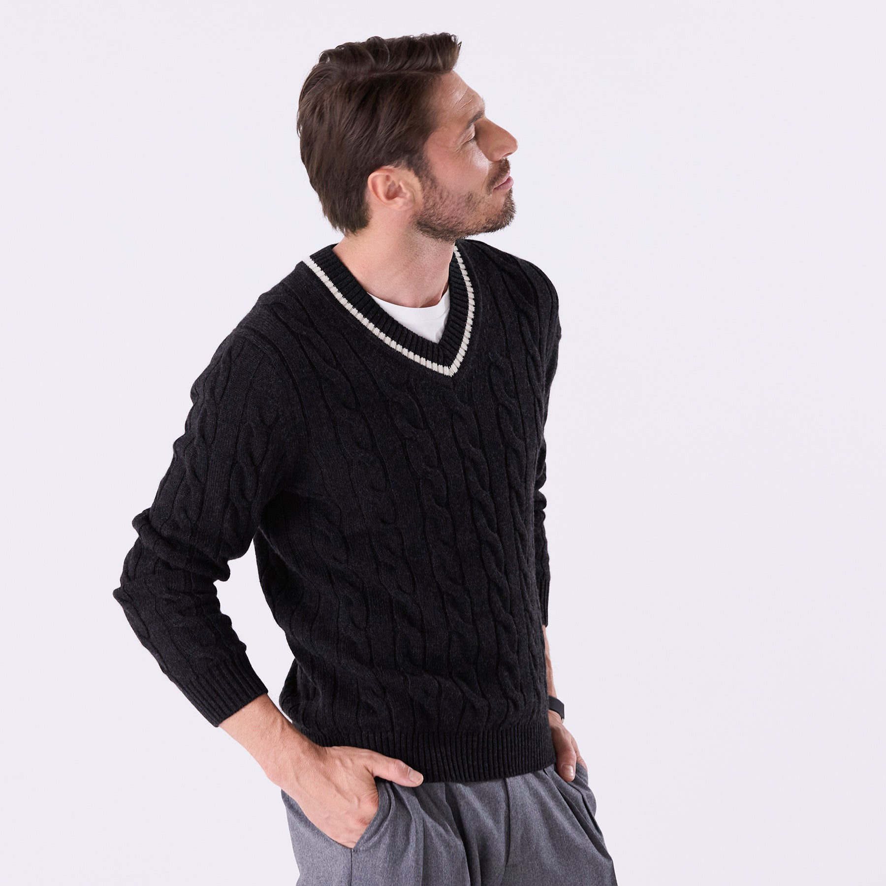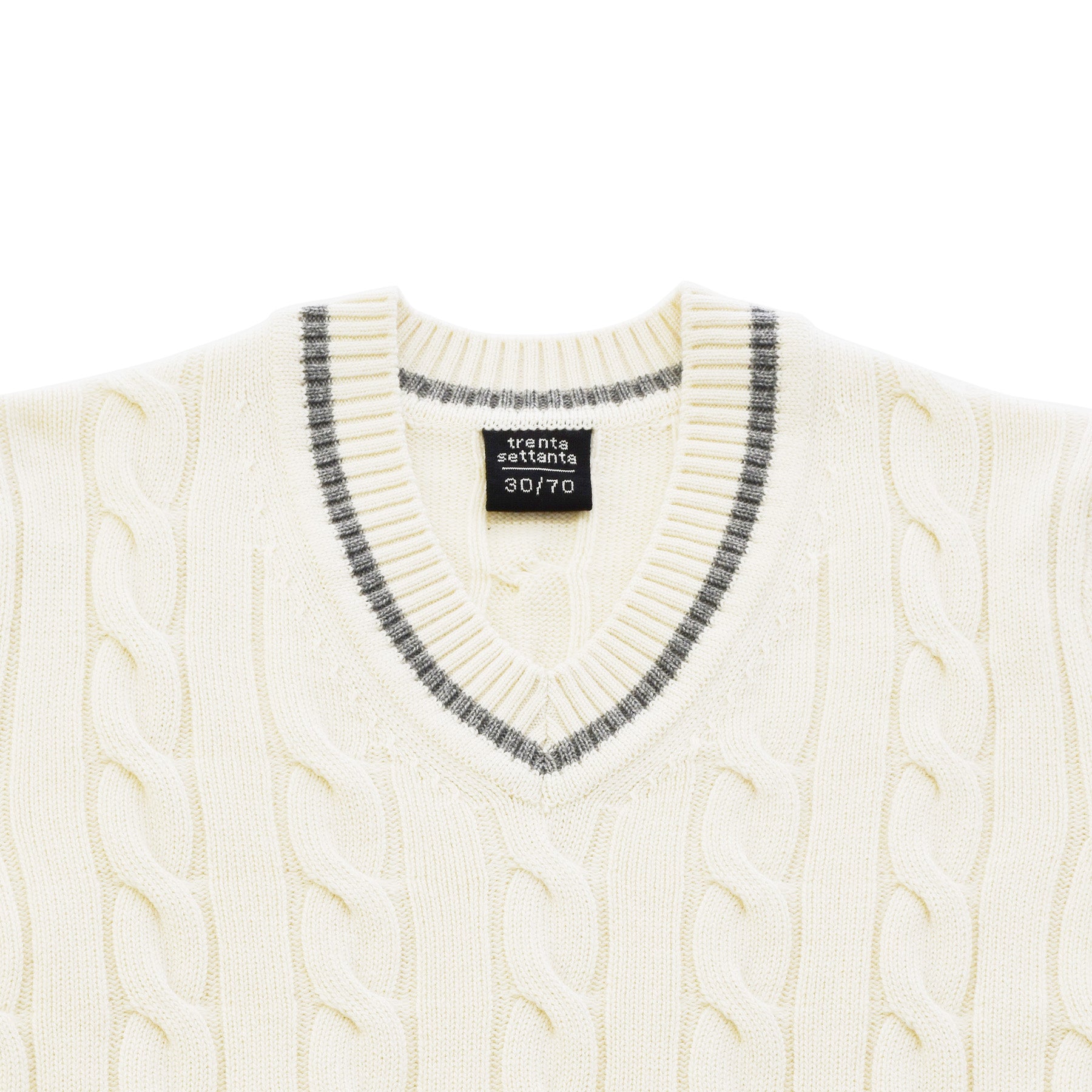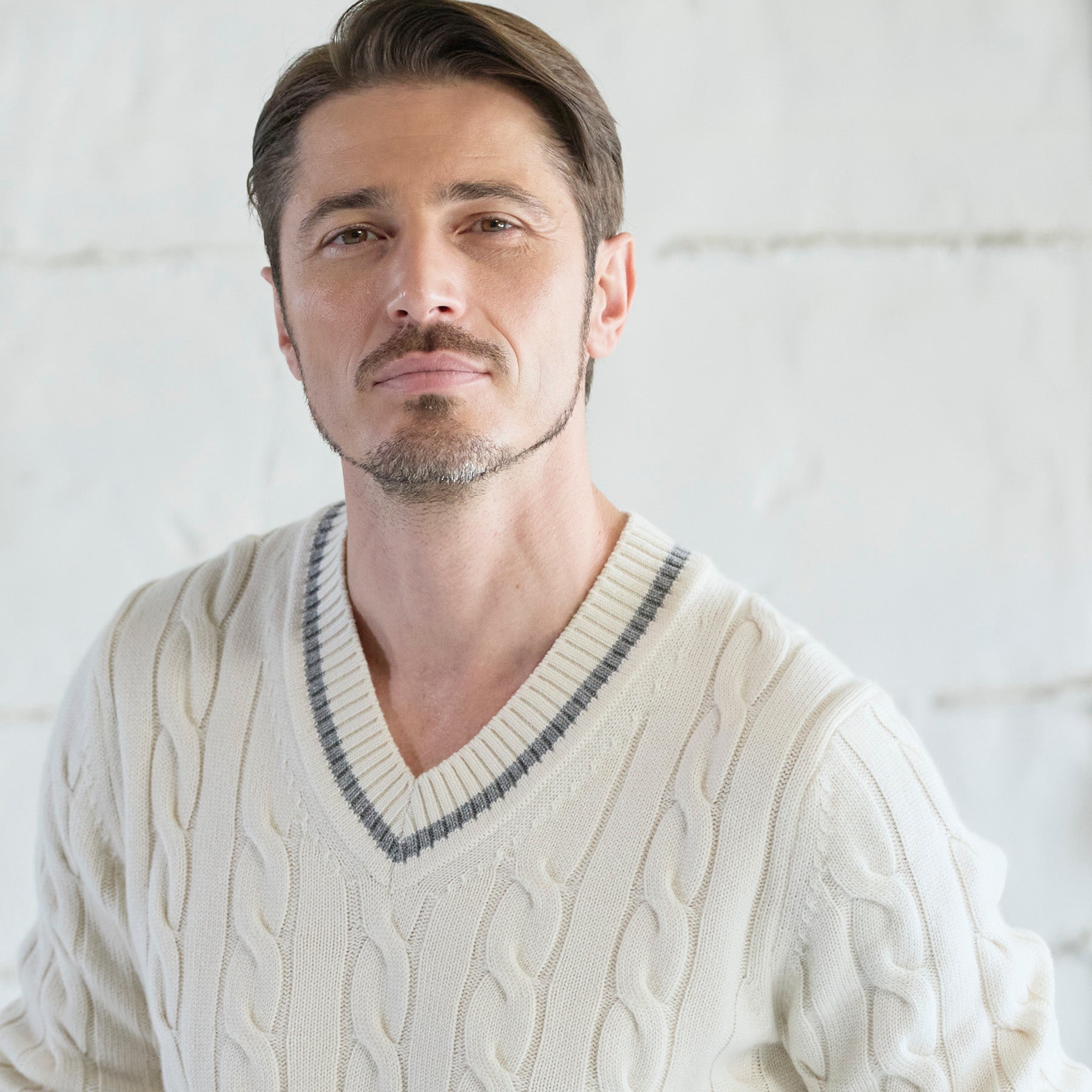 極上の着心地を生み出すカシミア70%シルク30%の糸を贅沢に使いケーブルで編み立てたラグジュアリーニット。こちらは定番のottimo・lussoシリーズの糸とは異なり、ふんわりと膨らみがある太番糸を使用しています。シルクが配合されていることで編地に適度なコシが加わるので、カシミヤ100%の柔らかさに少し抵抗があるという方にもおすすめです。丸みのある糸がケーブル柄を立体的に浮き上がらせ、アクセントに入れたネックの配色ラインが全体をシャープに引き締めてくれます。クラシックなデザインに素材の上質さが加わり、クラス感の漂う1枚に仕上がっています。